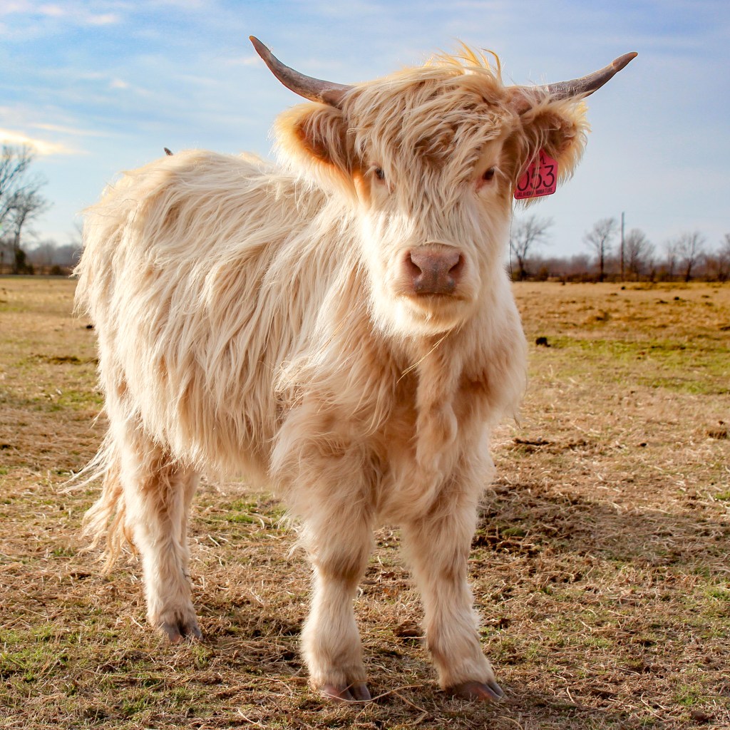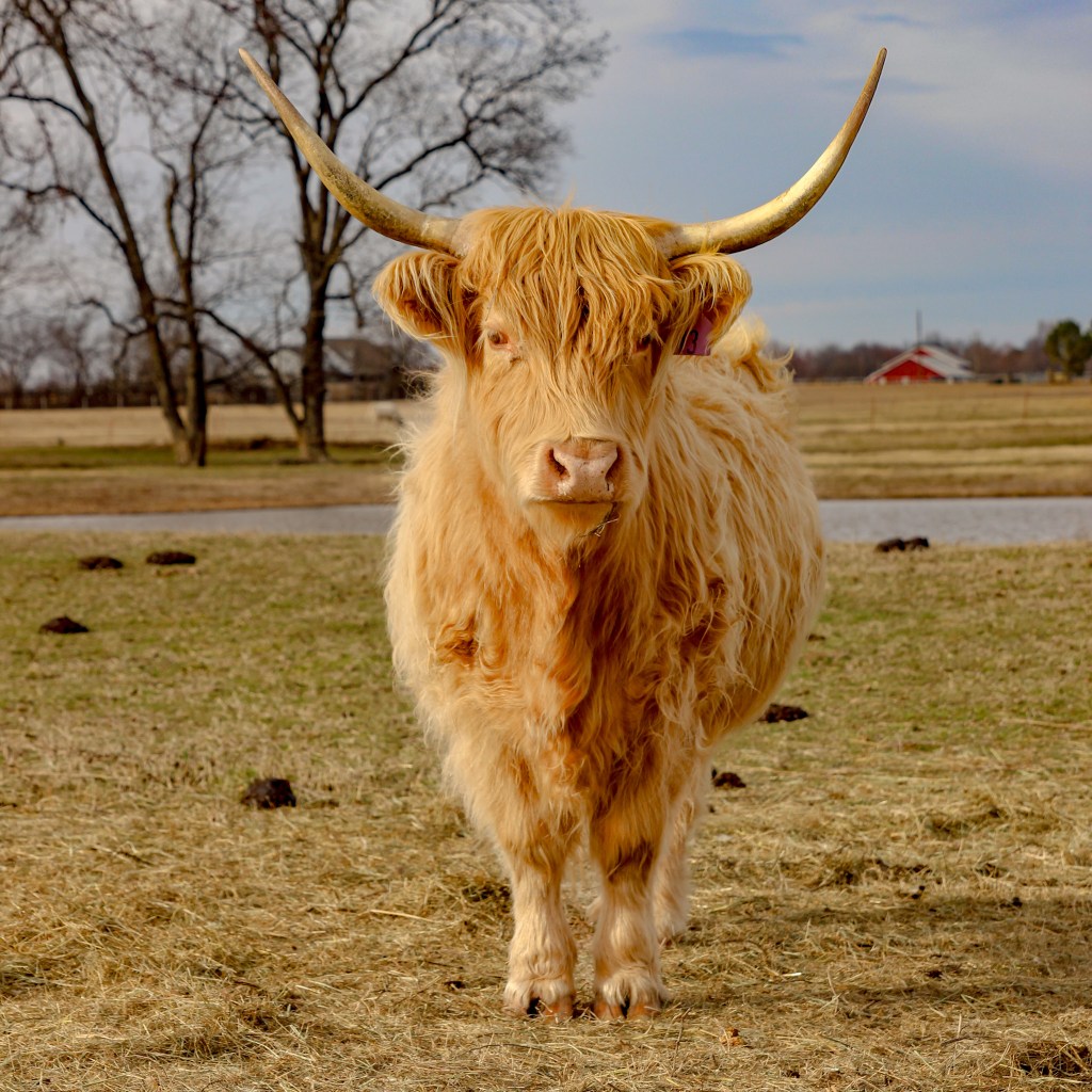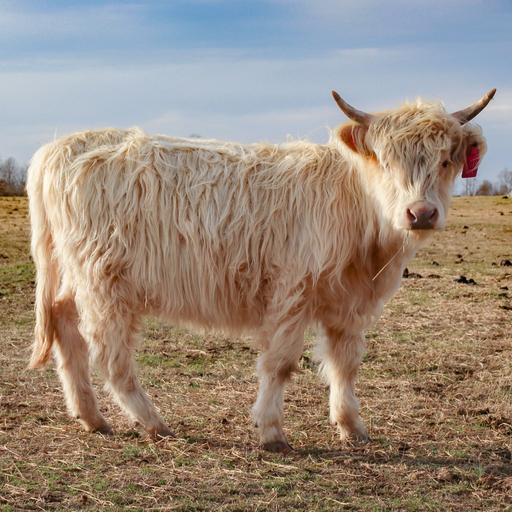 Rosa is a delightful example of a yellow-colored Highland cow and is registered with the American Highland Cattle Association (AHCA).