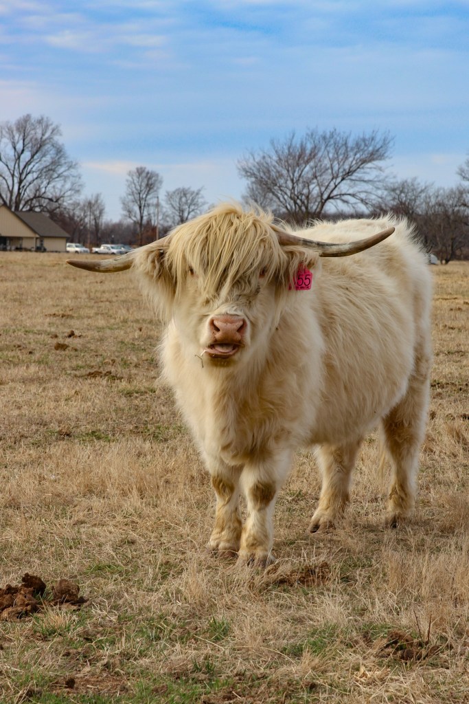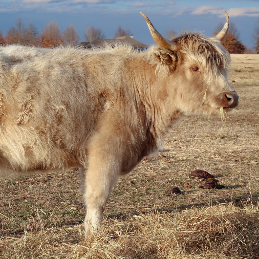 Grace is a beautiful young Highland cow with a lovely dun color. You can tell she’s still young by the length of her horns.