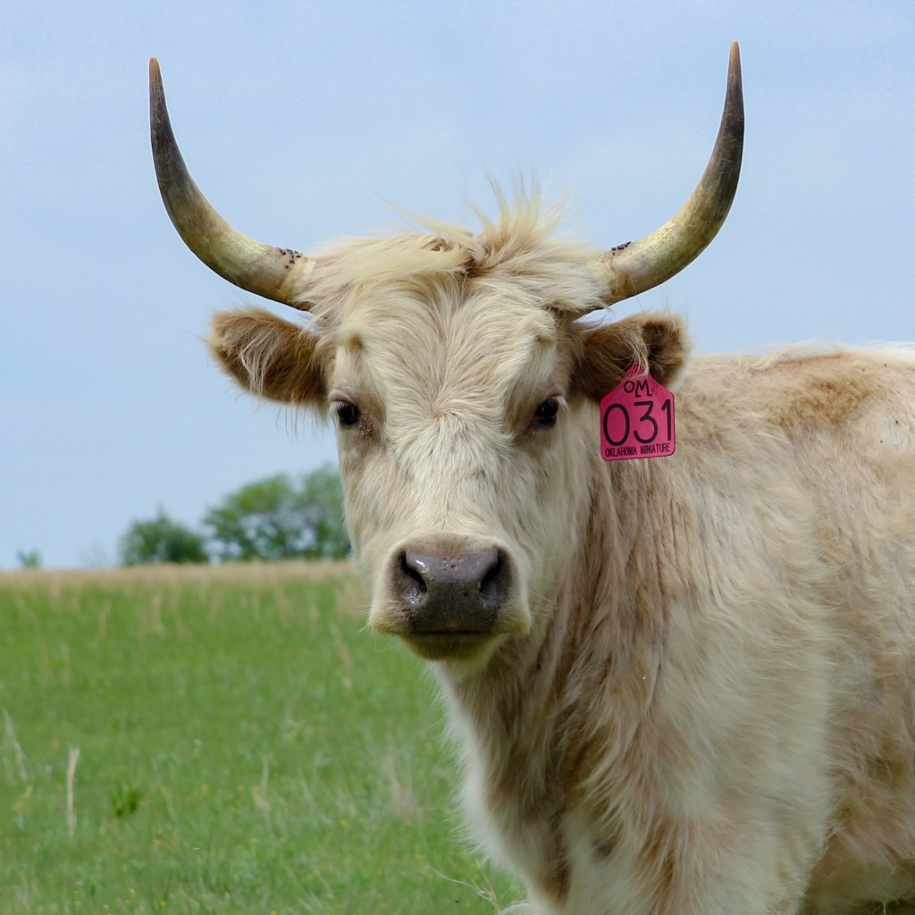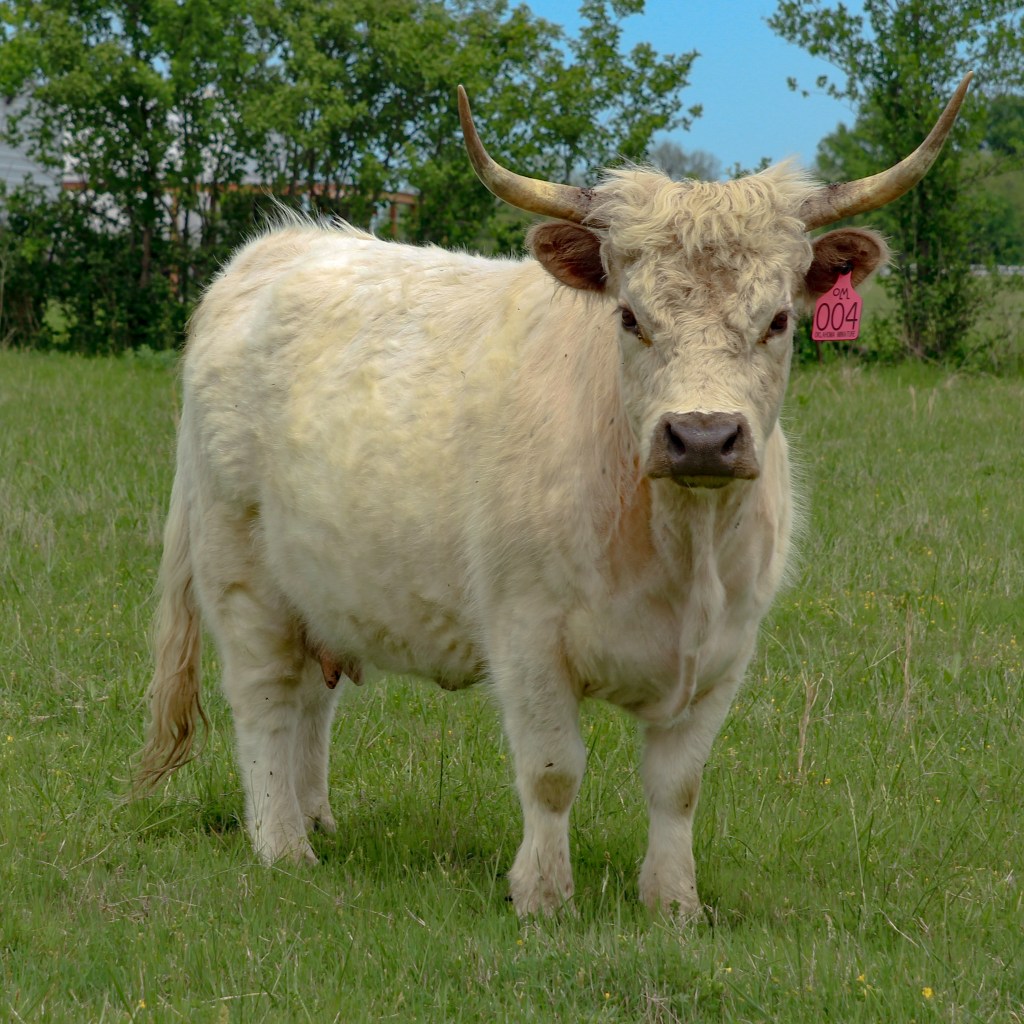 Kittie stands out as an excellent example of a white Highland cow with a unique horn structure. Both genetics and environment contribute to the development of her horns.