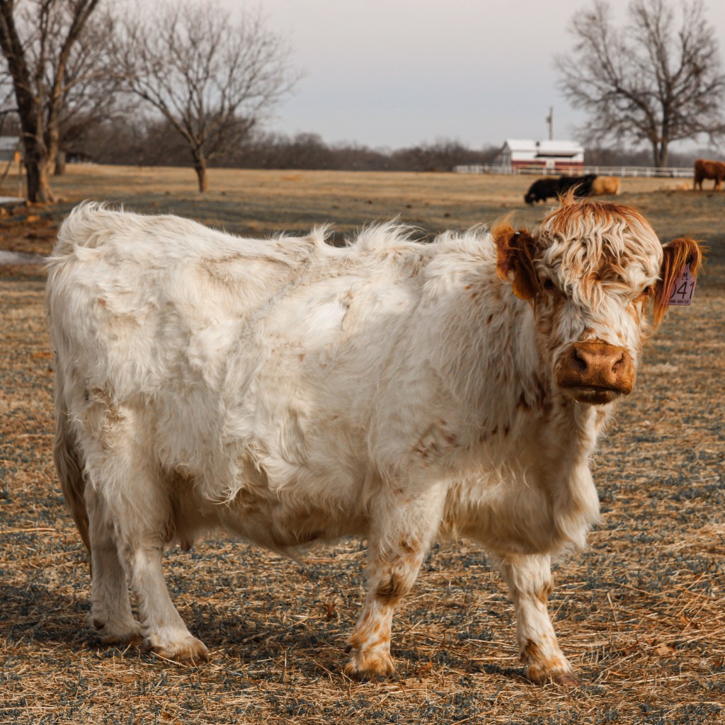 Frosti is a Hereford-Highland cross, and we absolutely love her color pattern!